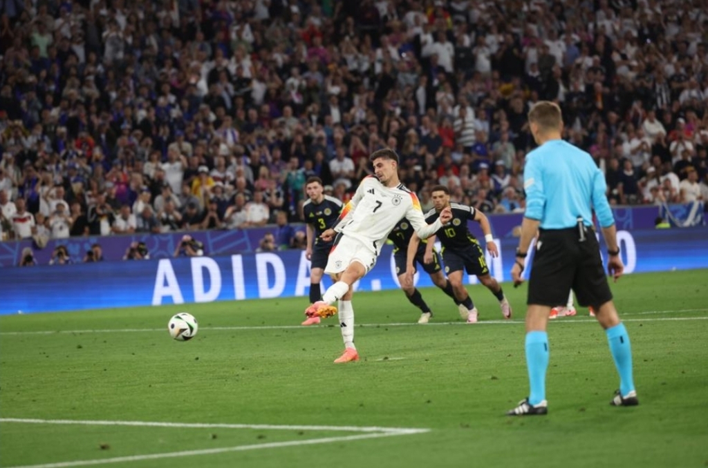 --- Havertz schieĂt einen Elfer fĂŒr Deutschland, rote Karte fĂŒr Porteus---