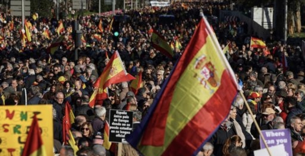 Viele Rechte Gruppen, unterstützt von der rechtsextreme Partei Vox, der Volkspartei PP und die Mitte-Rechts-Partei Ciudadanos hatten zur Demonstration aufgerufen.
