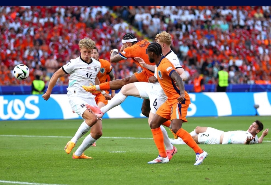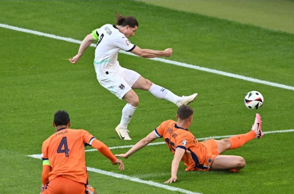 Österreich startet wieder sehr offensiv in die Partie, genau dafür sind sie auch bekannt. Die Aufstellung sieht im Vergleich zum Polen Spiel anders aus, Wöber und Prass sind in der Verteidigung und im Mittelfeld und der Offensive sind Romano Schmid und Wimmer neu. In der 6. Minute spielt Arnautović den Ball auf Prass, dieser läuft und bringt den Ball in den niederländischen Strafraum. Genau dort netzt Malen zum 0:1 ein, der Niederländer grätscht in den Ball rein und erzielt das 7. Eigentor dieser EURO. Danach lässt sich Österreich etwas fallen und spielt öfters auf Konter, in der 23. Minute erhält Malen die Chance seinen Fehler wieder gut zu machen. Der Stürmer steht alleine vorm österreichischen Tor, doch er schliesst hastig ab und der Ball kullert am Tor vorbei. Das hätte der Ausgleich sein können. Der Trainer der Niederlande wechselt früh, noch vor der 1. Halbzeit bringt er Xavi Simons. Dies zeigt seine Unzufriedenheit. Nach einem wuchtigen Schuss von Marcel Sabitzer (Österreich) landet der parierte Ball bei Marko Arnautović, doch der verwertet den Ball nicht. Mit 0:1 geht es in die Halbzeit.
