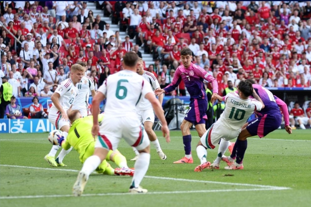 Deutschland geht mit der gleichen Aufstellung wie beim Spiel gegen Schottland ins Spiel, trotzdem müssen sie merken dass Ungarn nicht zu unterschätzen ist. Bereits in der 1. Minute pariert Neuer einen gefährlichen Schuss von Sallai mit seinem langen Fuß, danach blockt Andrich einen Schuss von Bolla. In der 22. Minute darf Duetschland jubeln, nachdem Iklay Gündoĝan sich erfolgreich gegen Orban durchsetzt bekommt Jamal Musiala den Pass, dieser netzt ein. Später muss Neuer nochmal halten, er bleibt cool gegen Szoboszlai. In der 45+3. Minute schiesst Ungarn durch einen Freistoß ein Tor, doch Sallai befindet sich in einer Abseitsposition. Es bleibt beim 1:0.