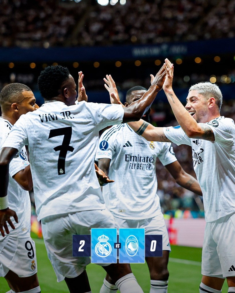 Real Madrid gewinnt den UEFA Supercup mit 2:0 gegen Atalanta Bergamo. Die Madrilenen starten mit einem Titelsieg in die Saison 2024/25 rein und haben den Supercup nun insgesamt 6 mal gewonnen, sie sind seit gestern alleiniger Rekordhalter.