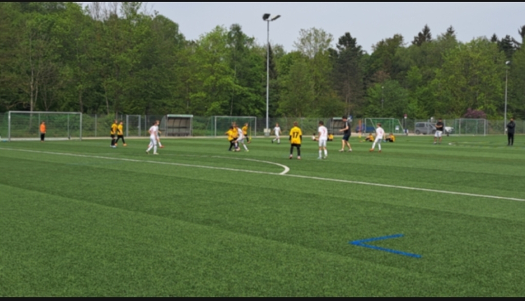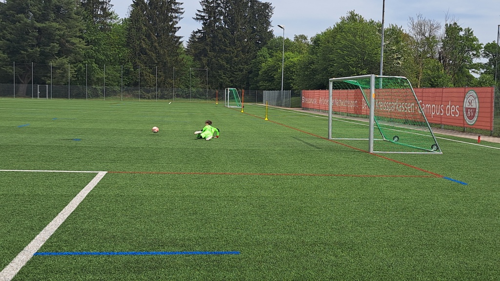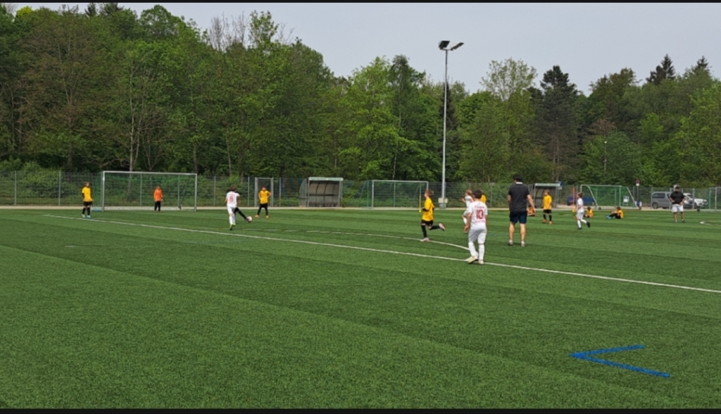 Das Spiel beginnt in Baldham an der B304, Vaterstetten in weiß legt los. Die Ersten beiden Chancen gehören der Nummer 8, einmal ein Schuss der abgeblockt wird und ein nicht-so knapper Freistoß. Und dann gibt's den Ersten Eckball für den SCBV, der Ball kommt auf den Kopf der Nummer 8️⃣, TOOOOR, 1:0 für den SCBV in diesem Ligaspiel. Das ist ein richtig guter Kopfball, die 5️⃣ von München Ost lässt die gegnerische 8️⃣ ganz alleine und so wird der Kopfball ermöglicht. Gleich darauf gibt's noch einen Eckball für Baldham, der Ball kommt rein, auf die Nummer 9️⃣, VOLLEY, TOR. Den Ball nimmt er richtig gut 👍, schiesst in die rechte Ecke. Ein schönes und besonderes Tor. Das Spiel 🎮 wird etwas ruhiger, München-Ost köpft knapp daneben, und der Baldhamer Torwart pariert zwei mal super. Doch die 1. Halbzeit gehört dem SCBV deutlich, und so fällt auch das 3:0, wenn auch ein bisschen unglücklich. Der Ball wird abgeblockt und landet im Strafraum von München, am Ende ist der Ball drin. Gleich darauf fällt das 4:0, die Nummer 8️⃣ schiesst ein Traumtor mit einem Schlenzer ins rechte Eck, richtig sehenswert.