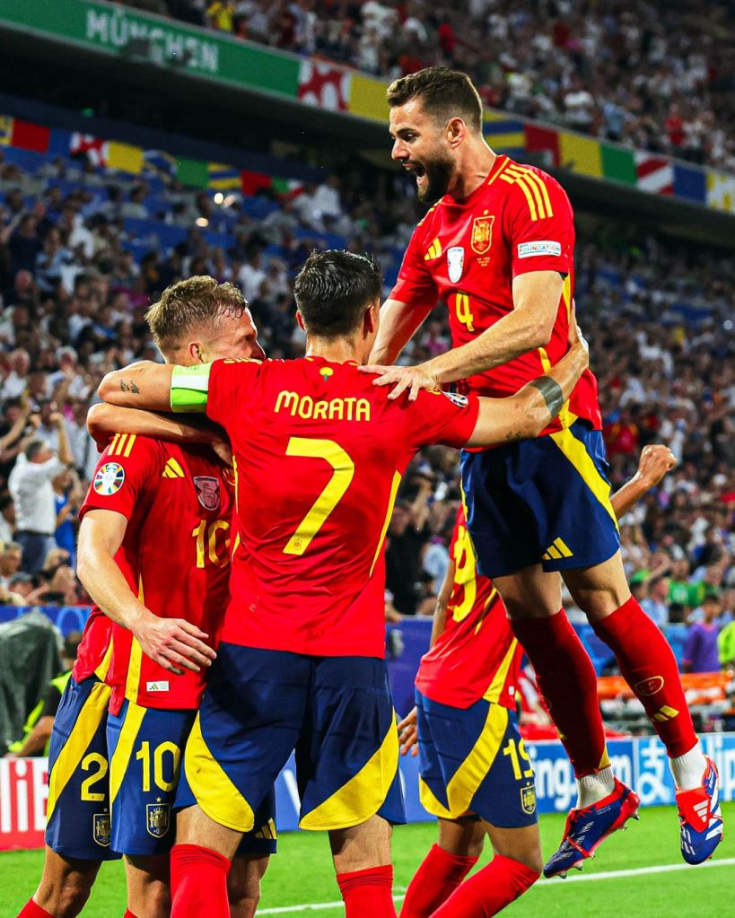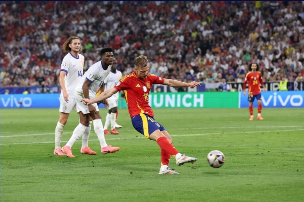 Die Spanier drehen das Spiel in 4 Minuten, Dani Olmo trifft zum 2:1. Nachdem eine Hereingabe schlecht von Saliba geklärt wird bekommt der Leipziger Olmo den Ball, lupft er den Ball an Tchouameni links vorbei und schießt den Ball aus 8 Metern per Volley ins rechte untere Eck, Kounde versucht ihn zu klären lenkt den Ball ins eigene Tor doch das Tor wird im Nachhinein an Dani Olmo gegeben. Das Spiel endet auch 2:1 und mit einem souveränem Sieg zieht Spanien ins Finale.