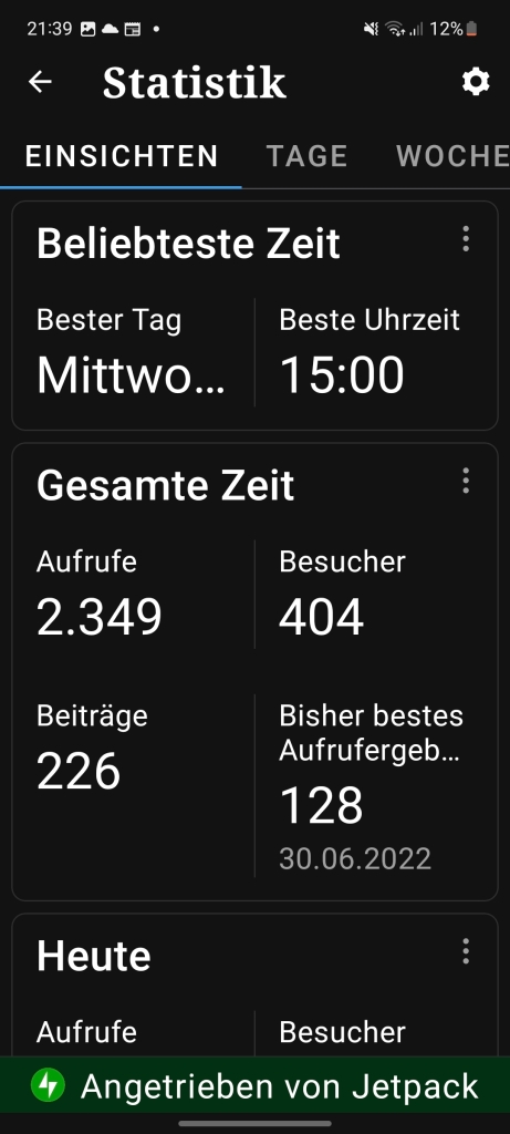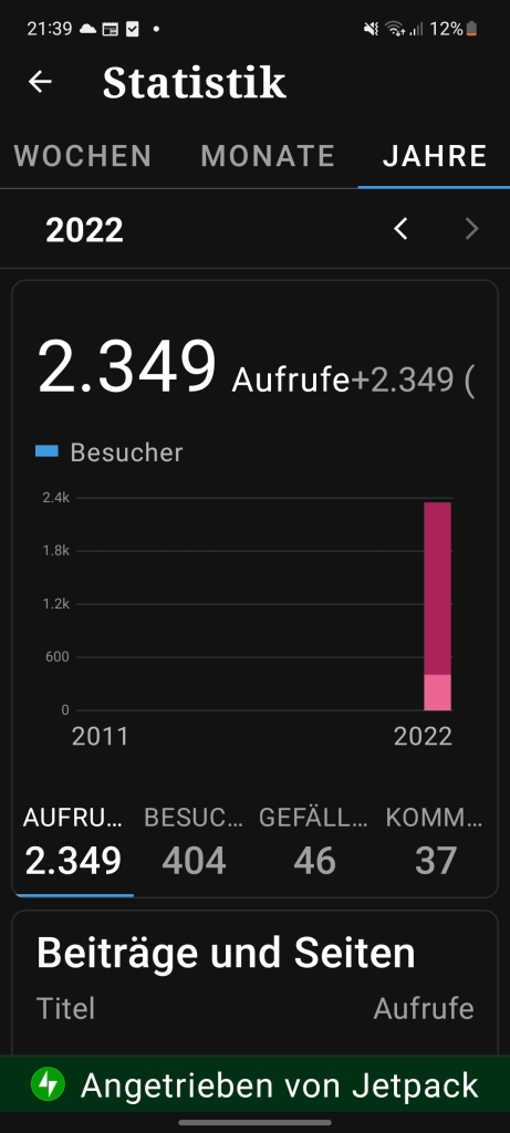 Die Website hat schon über 400 Besucher. Auf die Statistiken bin ich richtig stolz, denn die Website gibt es erst seit Mai 2022. Ich freue mich weiterhin I n auf das Schreiben für die Wevsite, und Danke für eure Unterstützung.